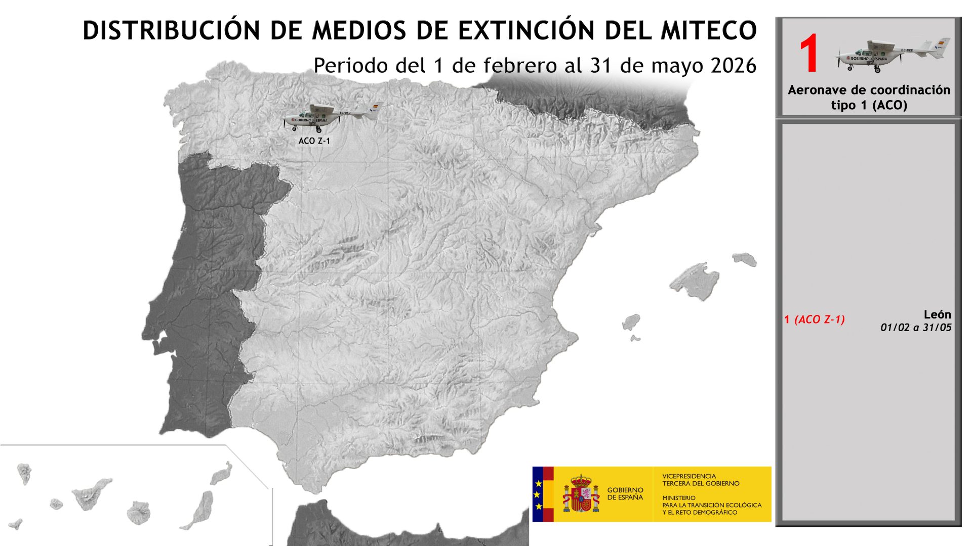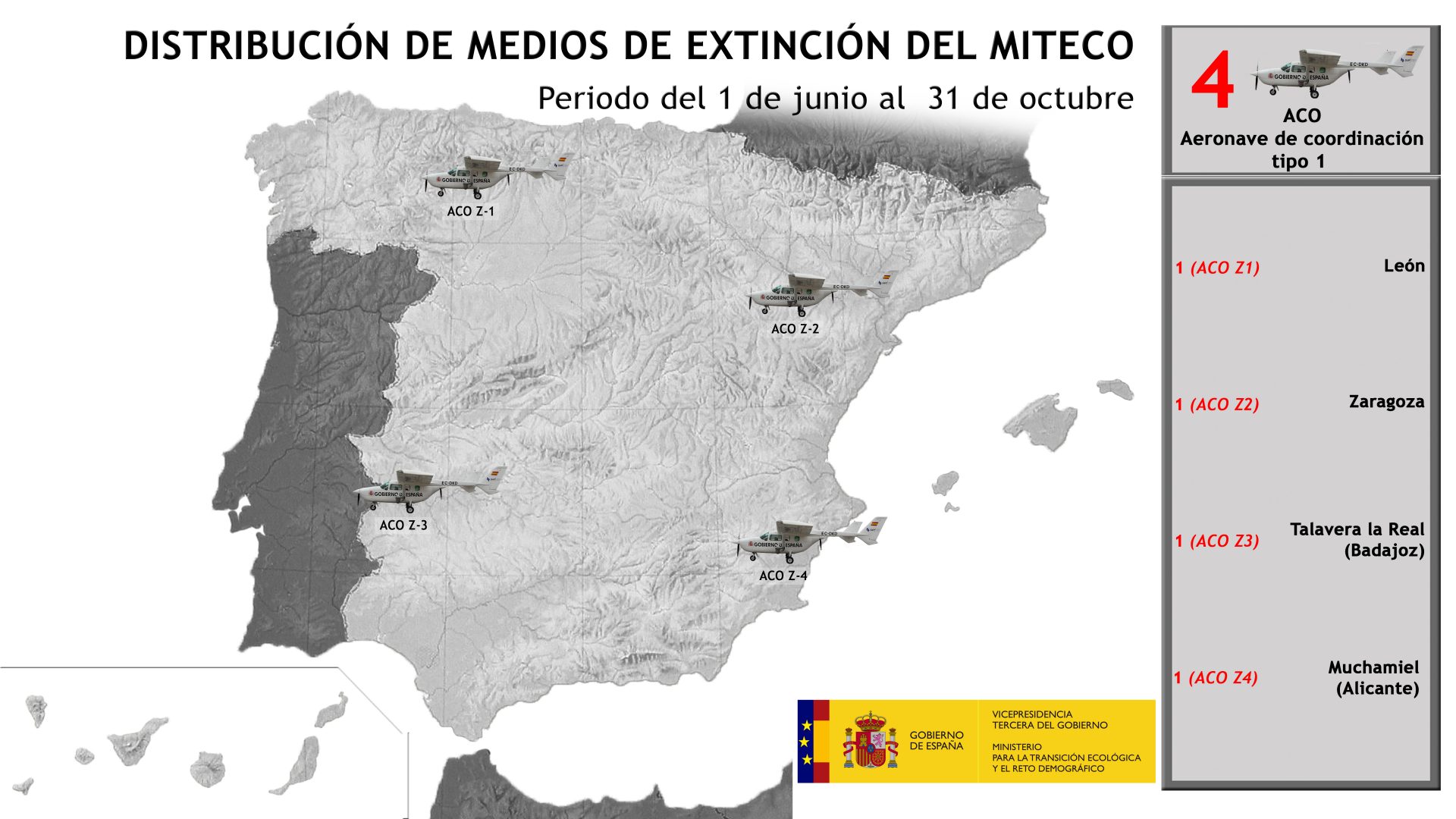 En campaña de verano, se cuenta con un total de 4 ACOs ubicados en los aeropuertos de León, Zaragoza, Talavera la Real (Badajoz), y el aeródromo de Muchamiel (Alicante).