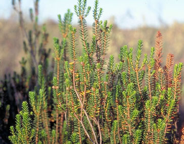 Arbusto de la familia de las empetráceas, de espectaculares raíces, descarnadas y retorcidas. Sus hojas son pequeñas y rígidas y las flores de color rosa con grandes estambres. El fruto de color rojo y forma esférica, cuando madura es más claro de color y dulce.