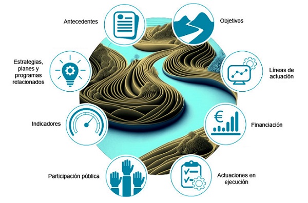 La nueva ENRR constituye uno de los instrumentos de planificación definidos en las Orientaciones Estratégicas sobre Agua y Cambio Climático que -junto a los Planes hidrológicos de demarcación, los Planes de gestión del riesgo de inundación, los Planes Especiales de Sequía, el Plan Estratégico Español para la conservación y el uso racional de los humedales y el Plan de Acción de Aguas Subterráneas 2023-2030- tiene como fin el logro de los objetivos ambientales y de seguridad hídrica de nuestro país; siendo uno de sus principales objetivos restaurar y reconectar estructural y funcionalmente 3.000 km de ríos españoles antes del año 2030.