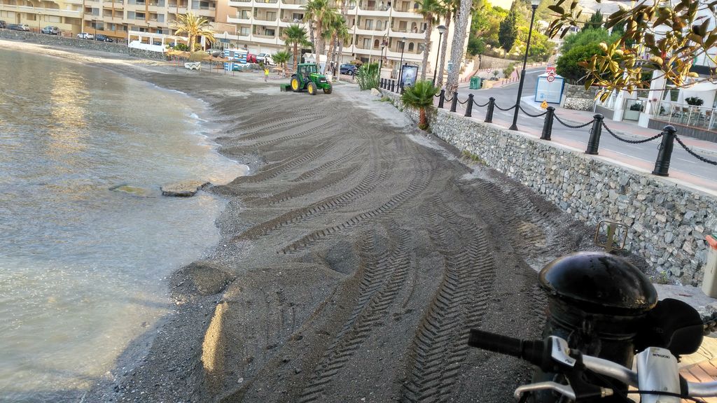 Durante. ACTUACIÓN 2.- Acondicionamiento de la playa de Melicena: Acondicionamiento de la playa realizando modificación de perfiles y pequeños trasvases, T.M. Sorvilán. (Proyecto de mantenimiento y conservación de la costa de Granada 2016)