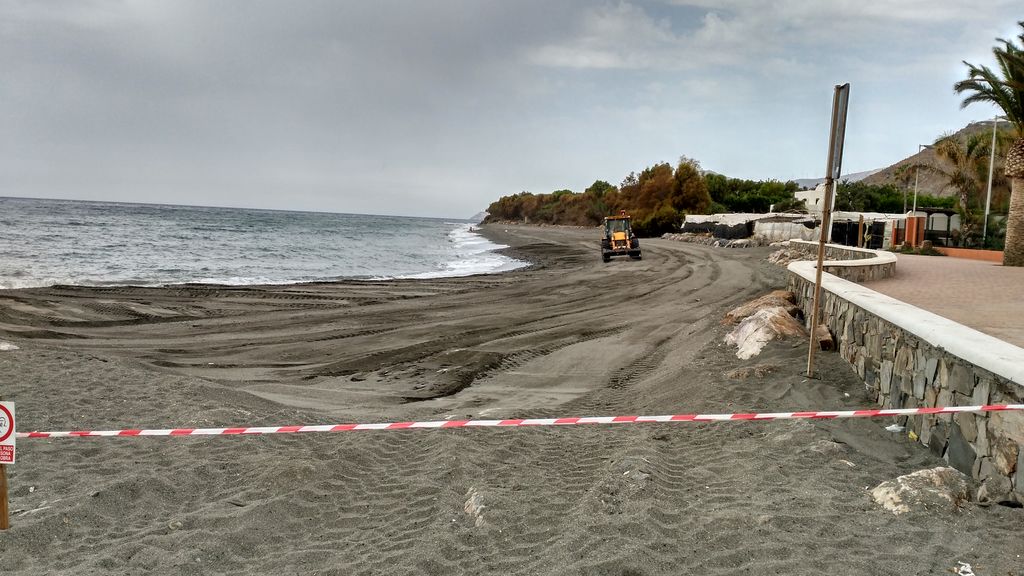 Durante. ACTUACIÓN 1.- Acondicionamiento de la playa de La Rábita: Acondicionamiento de la playa realizando modificación de perfiles y pequeños trasvases, T.M. Albuñol. (Proyecto de mantenimiento y conservación de la costa de Granada 2016)