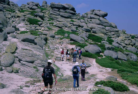 Los piornales crecen por encima de los pinares, a partir de los 1.800 m. aproximadamenete. Son matorrales densos en los que domina el piorno serrano (Cytisus oromediterraneus). Florecen durante el mes de junio.