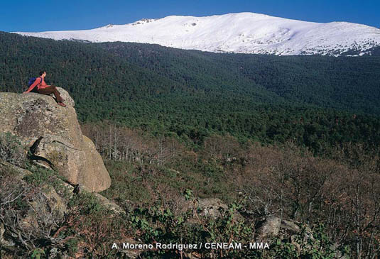 Los bosques de pino silvestre o pino albar (Pinus sylvestris) constituyen la formación arbórea más emblemática de la Sierra de Guadarrama. Los pinares segovianos de los Montes de Valsain, son los mejor conservados.