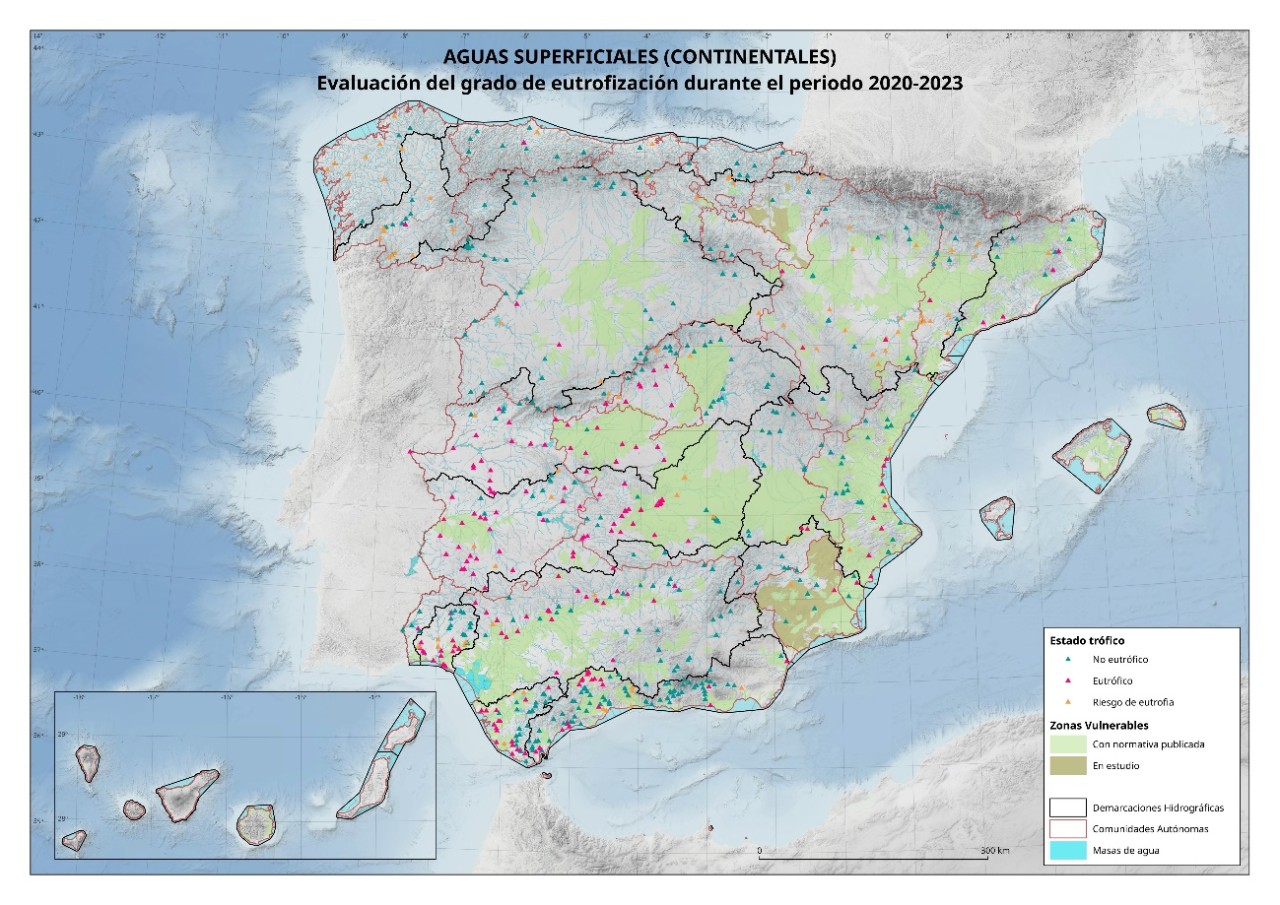 Las siguientes imágenes presentan el resultado en España de las aguas superficiales y subterráneas: