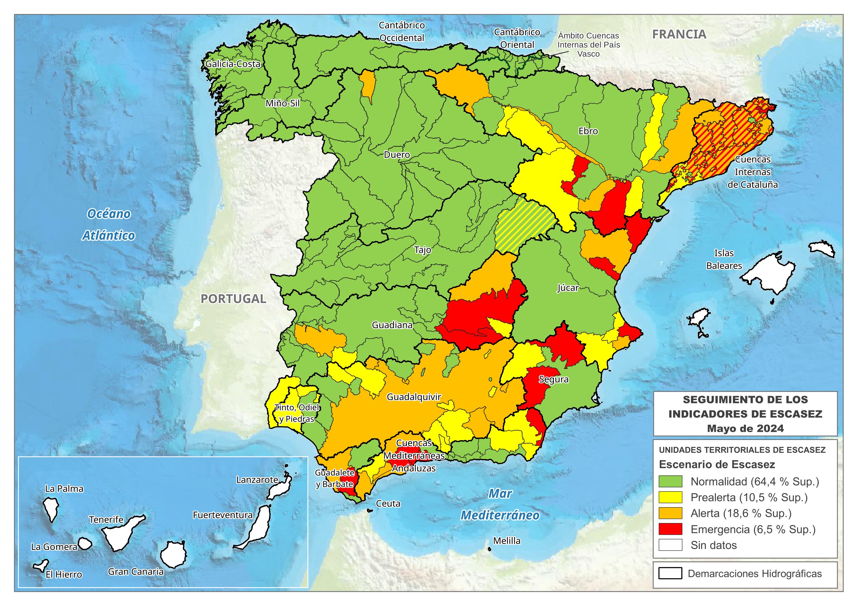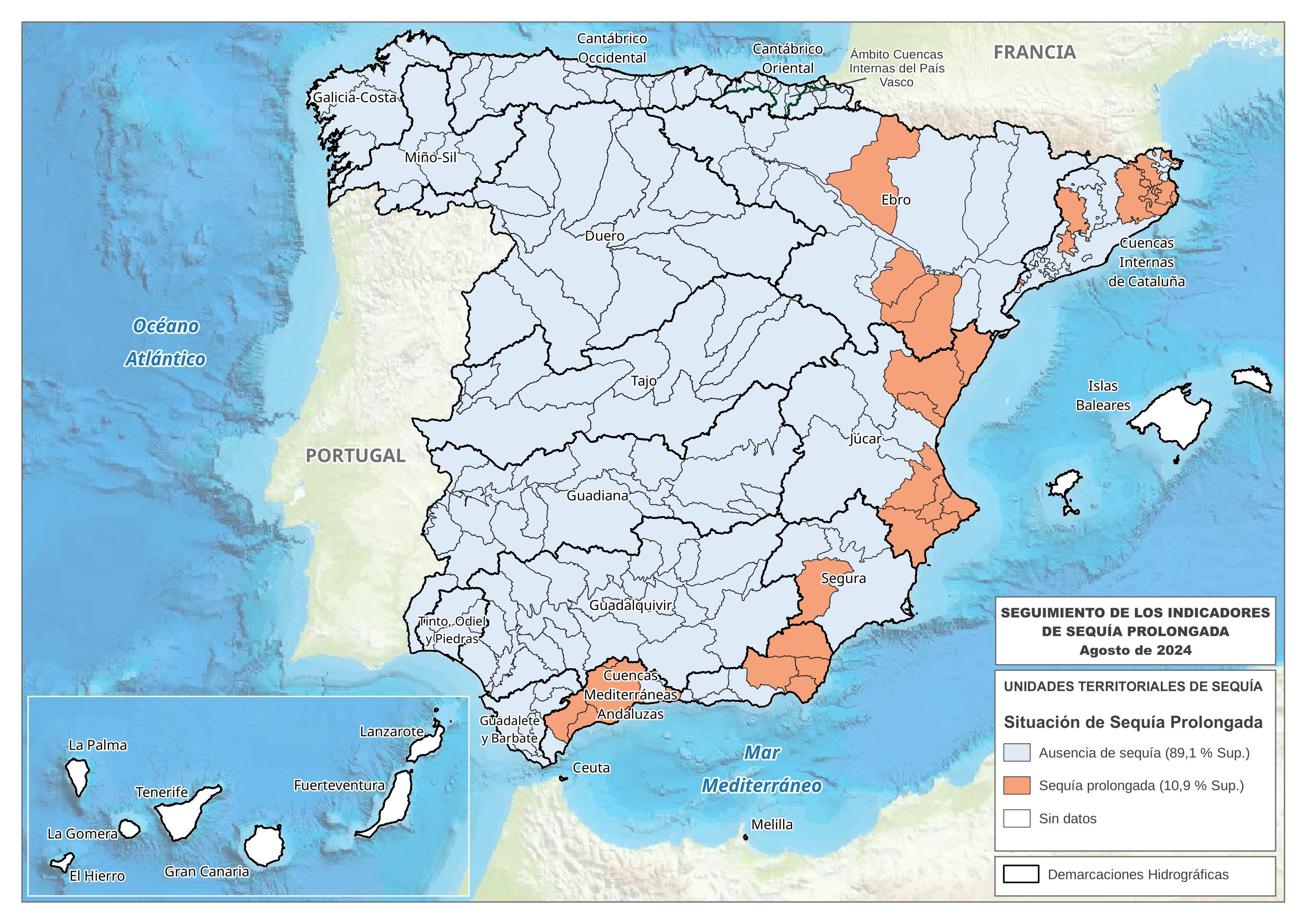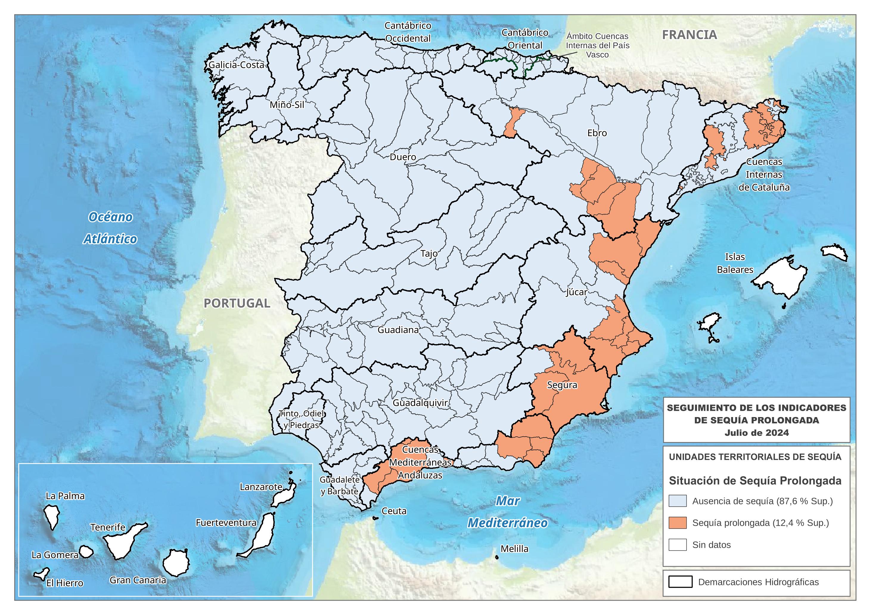 A través de los enlaces de la siguiente Tabla se pueden descargar los informes y mapas mensuales de sequía y escasez del año 2024. Para cada mes, los mapas corresponden al último día del mes anterior, elaborándose los informes a partir de dichos datos.