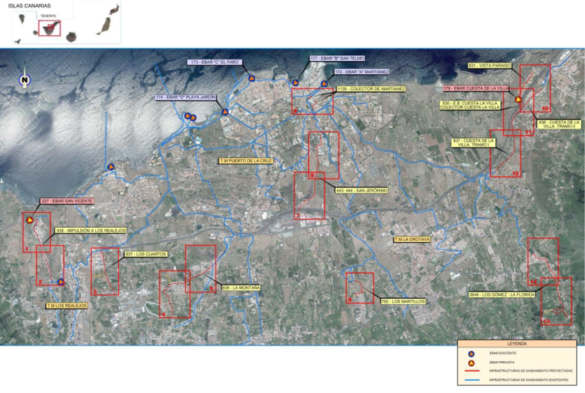En la actualidad en la zona del Puerto de la Cruz están en servicio dos colectores interceptores de aguas residuales, uno de ellos discurre por el cauce del Barranco y otro por la vía pública. El primero de ellos recoge las aguas de los hoteles de El Tope, Casablanca y San Felipe, junto con las del centro comercial la Pirámide, pero tienen numerosos problemas por encontrarse en un estado muy deteriorado. Por este motivo, se plantea ejecutar las acometidas de los hoteles El Tope y Casablanca, que son los mayores afectados, y derivarlos al colector existente de diámetro 315 mm que discurre por la Avenida Aguilar y Quesada.