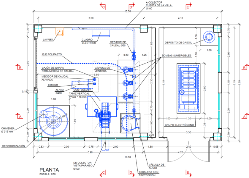 Este tramo consiste en un colector por gravedad de diámetro variable DN 1.000 y DN 630 mm de PVC Corrugado, que conectará con otro punto de la red de alcantarillado situado aguas abajo.
