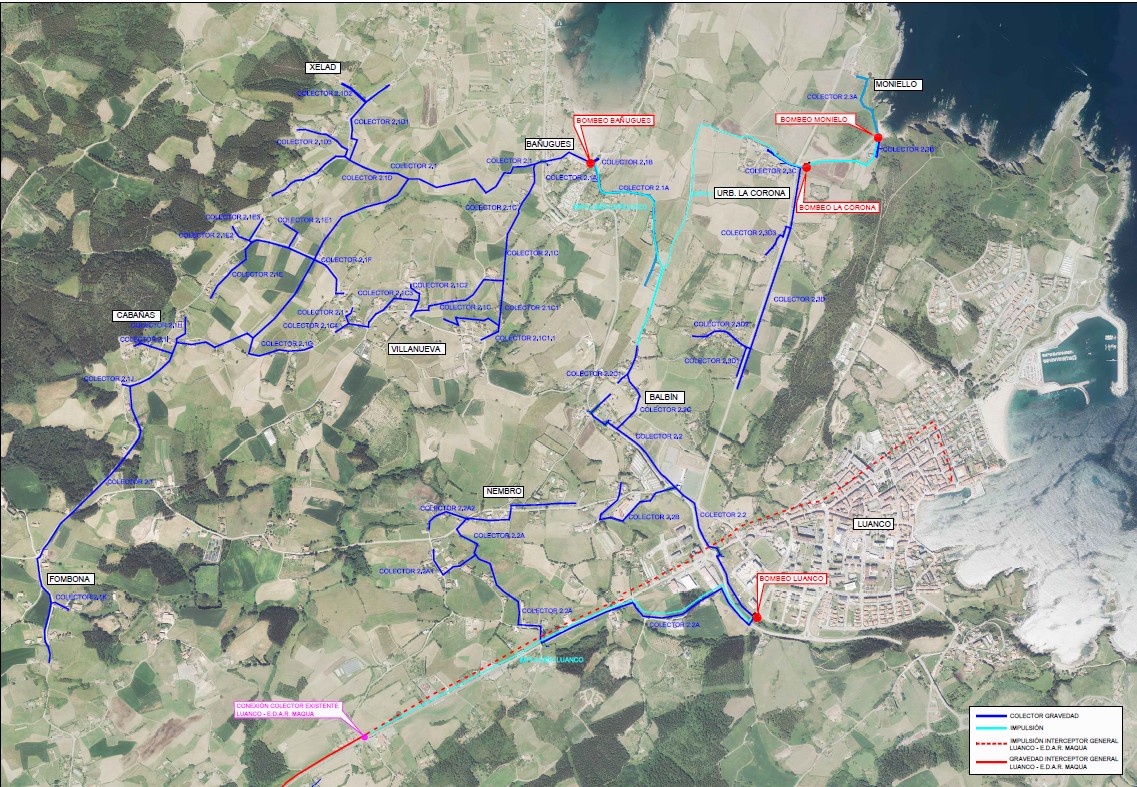 La zona de actuación del presente proyecto se sitúa al Este del Cabo de Peñas, comprendiendo zonas costeras de especial importancia como la Playa de Bañugues o la de Moniello. Además incluye algunos núcleos interiores como Heres, Gelad, Cabañas, Banzoleo y Fombona. Por último recoge también zonas periféricas de Luanco; Balbín, Peroño y parte del núcleo de Nembro.