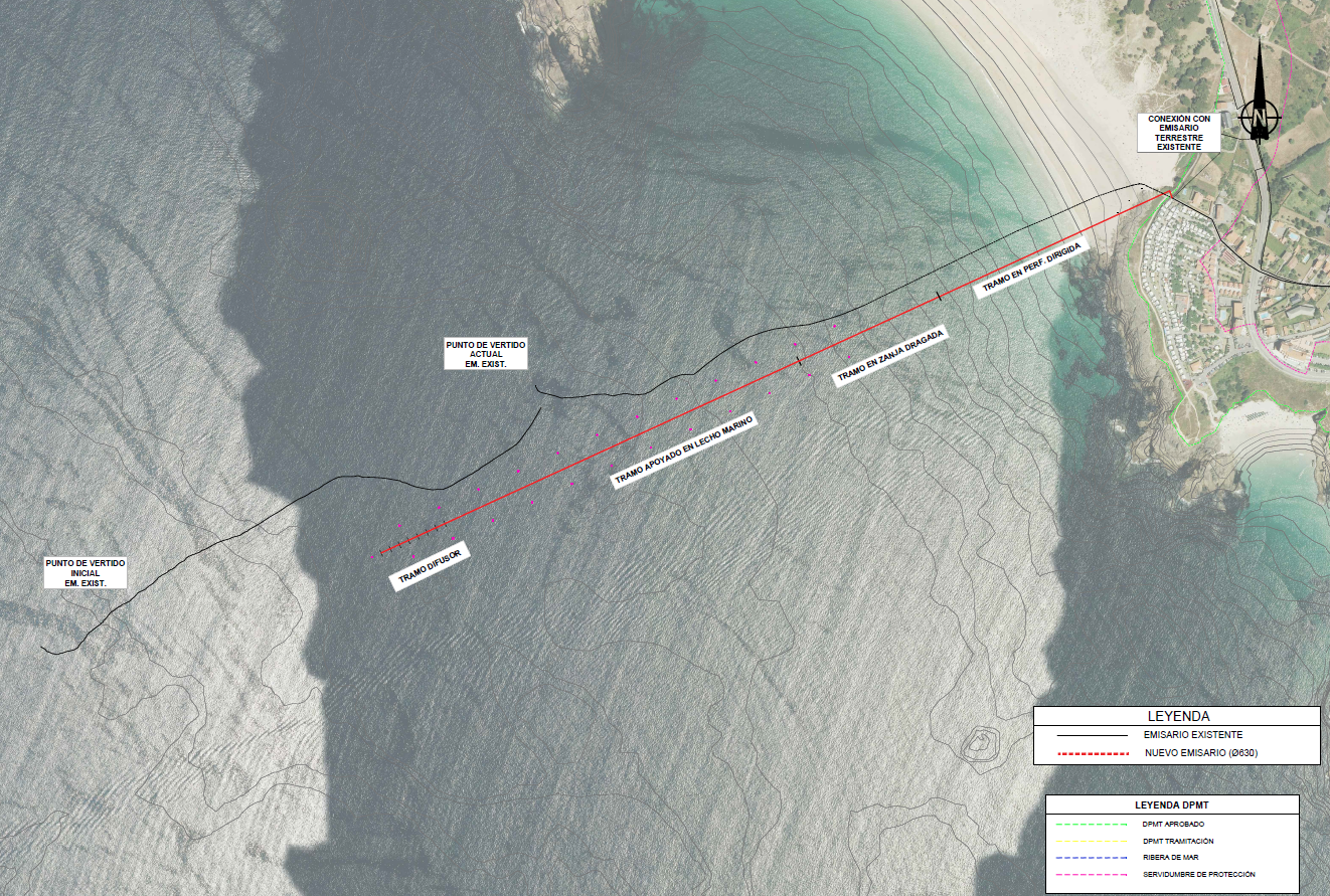 El emisario existente presenta un segundo tramo (de 900 m) que se encuentra desconectado del resto y que por tanto no tiene función alguna actualmente ni tras la actuación. Por tanto, este tramo es retirado del fondo del mar.