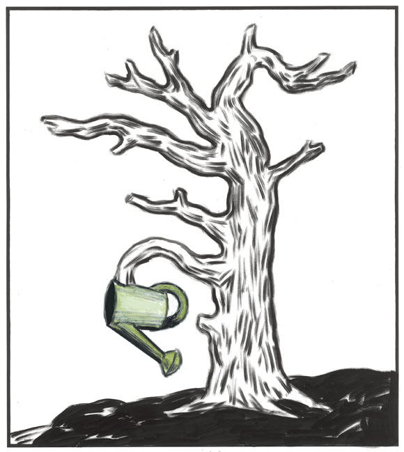 Planta aislada en un secarral que dice: "me plantaron en un secarral y luego me señalaron diciendo ¡mirad, se muere de sed!, pero eran sus piscinas las que querían llenar"
