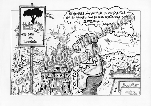 Exposición de viñetas Vaya Fauna. Comportamiento inadecuado: hacer fuego en el campo