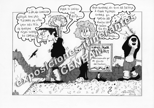 Exposición de viñetas Vaya Fauna. Comportamiento inadecuado: poner en peligro al resto de las personas que visitan el espacio natural, tirando piedras...