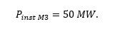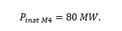 Dada una instalación como la representada en el Ejemplo 3, compuesta por un módulo compuesto a su vez por un módulo fotovoltaico y un módulo de almacenamiento electroquímico (M1 + M2), un módulo de almacenamiento electroquímico (M3) y un módulo de generación síncrona (M4), se calcula a continuación la potencia instalada de la instalación.