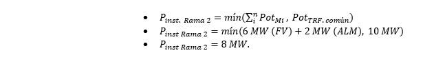 - Potencia instalada Rama 1 + Rama 2: