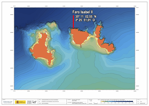 Representación del relieve del terreno en el Faro de Isabel II