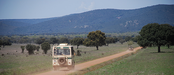 Las rutas en todo terreno, que son guiadas, permiten recorrer un área muy amplia y realizar una visita más general. Incluyen un pequeño paseo a pie y varias paradas de observación. Suele haber tres turnos de visitas diarios. Los turnos que coinciden con las horas de mayor actividad de la fauna, y por tanto en los que es más fácil la observación de faunas, son los de primera hora de la mañana y última hora de la tarde. Estas visitas son gestionadas por la empresa concesionaria Aventuras Cabañeros.