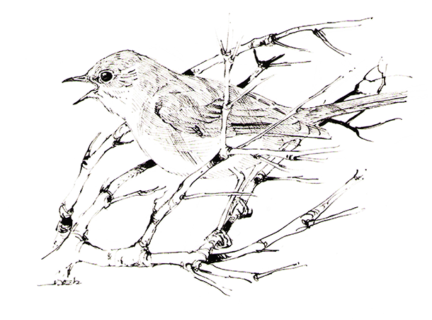 El paisaje cerrado de una maraña de vegetación: un horizonte visual limitado a pocos metros. Muy cerca canta un ruiseñor y otros le responden desde lejos, junto con verdecillos, verderones y carboneros.