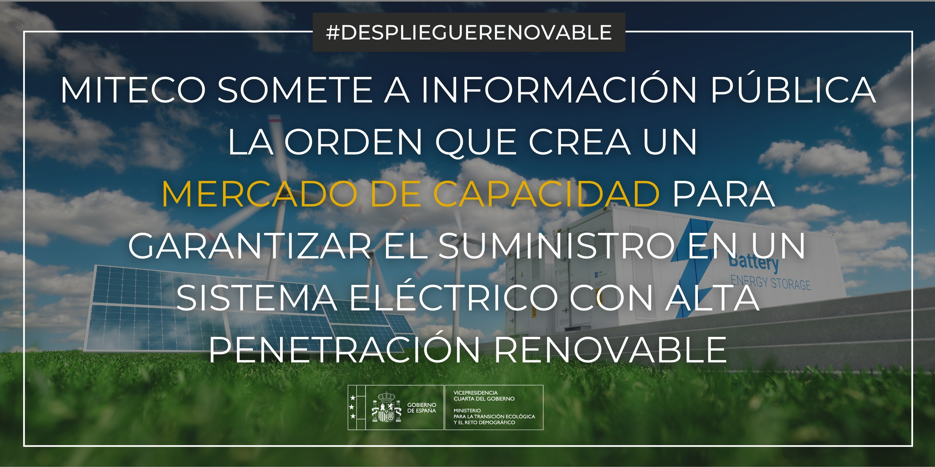 El Ministerio para la Transición Ecológica y el Reto Demográfico (MITECO) abre el proceso de audiencia e información pública de la orden que crea un mercado de capacidad en el sistema eléctrico español para incentivar la inversión en almacenamiento y firmeza, garantizando el suministro en un sistema eléctrico con alta penetración renovable.