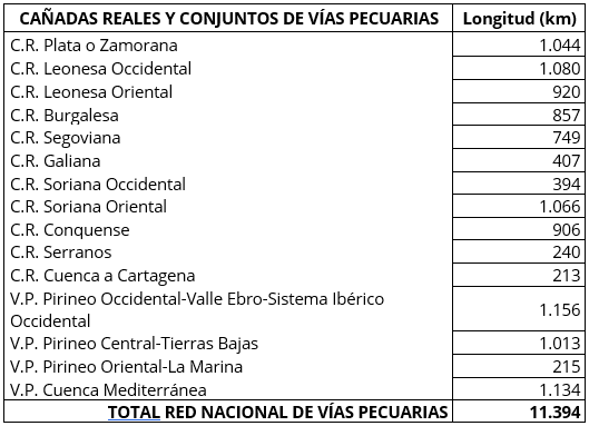 El Ministerio ha acordado con las CCAA la relación de aquéllas que conforman la Red Nacional de Vías Pecuarias (RNVP) como garantía de integridad y continuidad y que está compuesta por:
