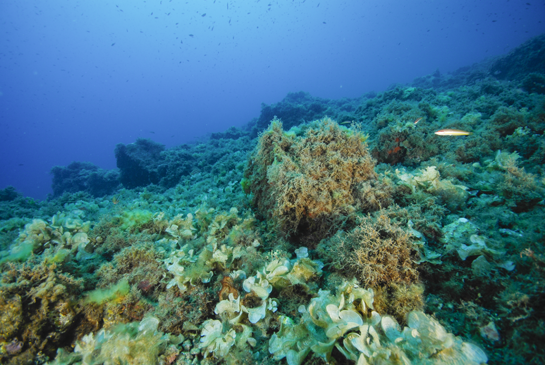 -16m. En primer término varios ejemplares del alga Padina pavonica
