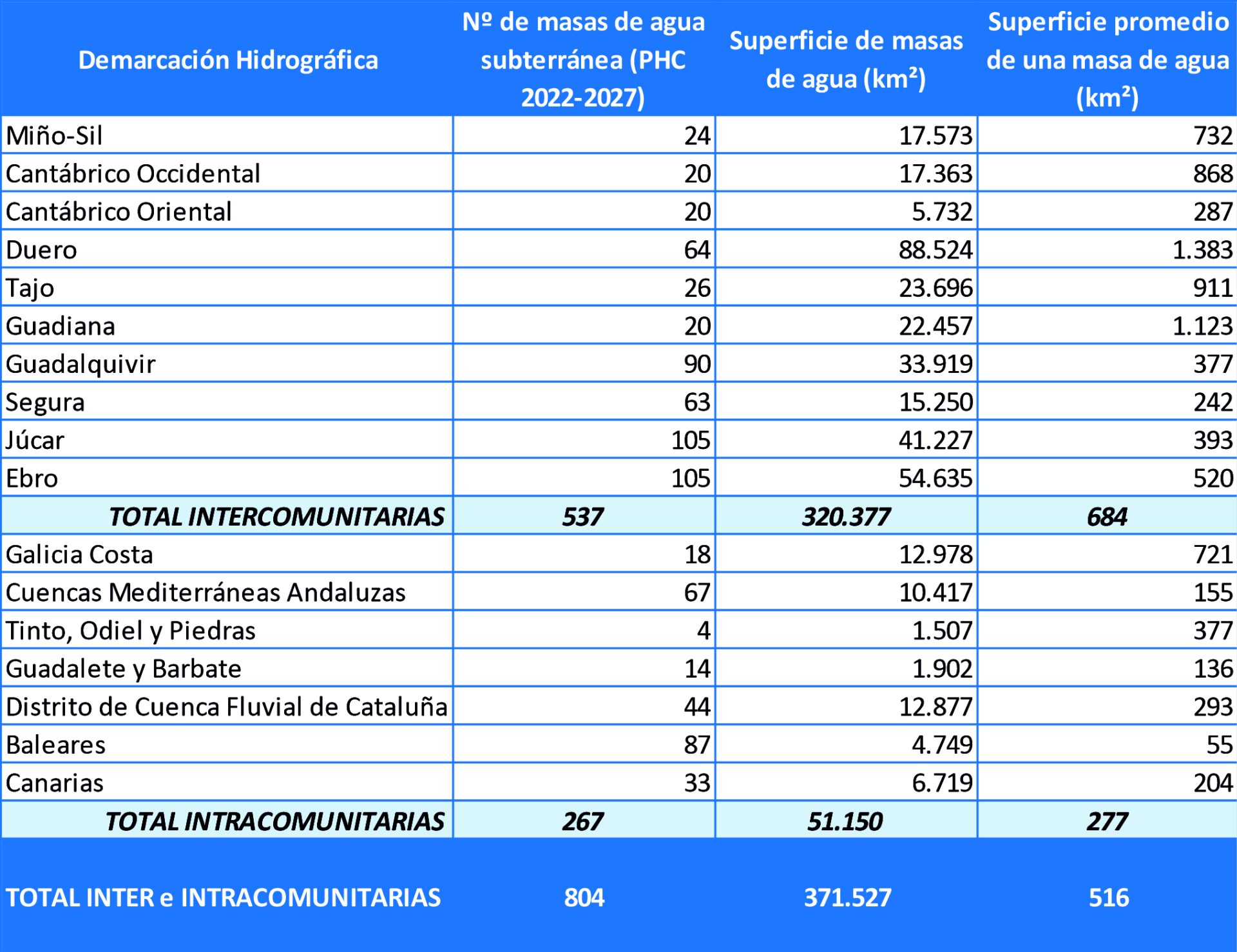Tabla de las masas de agua subterránea (Haga clic en la imagen para ampliar)