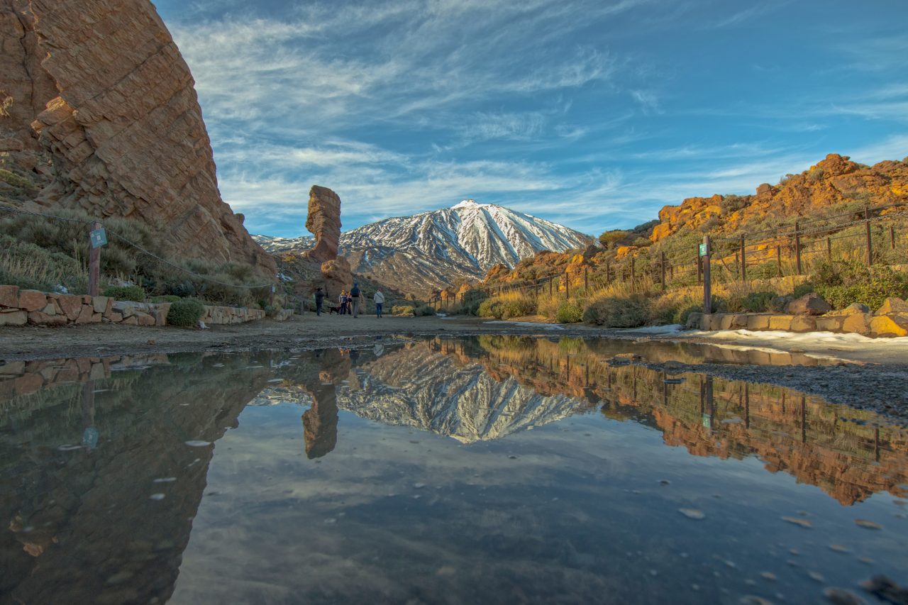 El Teide es el parque nacional más grande y antiguo de Canarias, y el más visitado de la Red de Parques Nacionales. El parque, que ocupa la parte central de la isla de Tenerife, se extiende desde los bosques de pino canario (Pinus canariensis) ubicados a 1.600 metros de altitud hasta los 3.715 metros del Teide, el pico más alto de España. Su espectacular paisaje es uno de los monumentos geológicos más impresionantes del mundo, formado por volcanes, coladas de lava y una increíble variedad de colores y formas. Destaca la enorme caldera volcánica Circo de Las Cañadas, en cuyo interior se alza el Teide-Pico Viejo, un imponente volcán compuesto (estratovolcán).