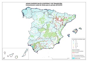 Las siguientes imágenes presentan el resultado en España de las aguas superficiales y subterráneas: