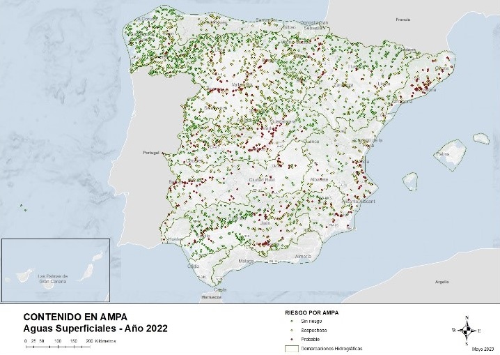 Contenido en AMPA en aguas superficiales - Año 2022 (Haga clic en la imagen para ampliar)