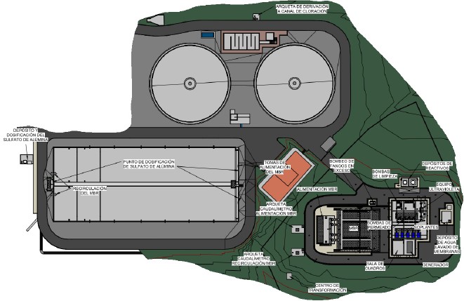 Se plantea en este proyecto la construcción de un tratamiento terciario mediante un sistema MBR seguido de una desinfección UV, quedando la actual desinfección de la planta mediante laberinto de cloración como complemento a utilizar en situaciones puntuales.